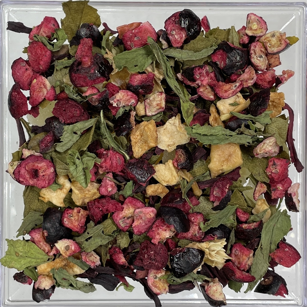 Авторский чай "Альпийский со смородиной" - это уникальный напиток на основе каркаде с добавлением ягод смородины, мяты и кусочков яблока. Каркаде - это сушеные цветы гибискуса, которые обладают ярко выраженным кисло-сладким вкусом и ярко-красным цветом. Ягоды смородины обогащают чай витаминами и полезными элементами, а также придают ему освежающий вкус. Мята добавляет нотки свежести и прохлады, а кусочки яблока - сладость и фруктовые нотки. Все ингредиенты тщательно подобраны и сбалансированы, чтобы создать гармоничный вкусовой букет
