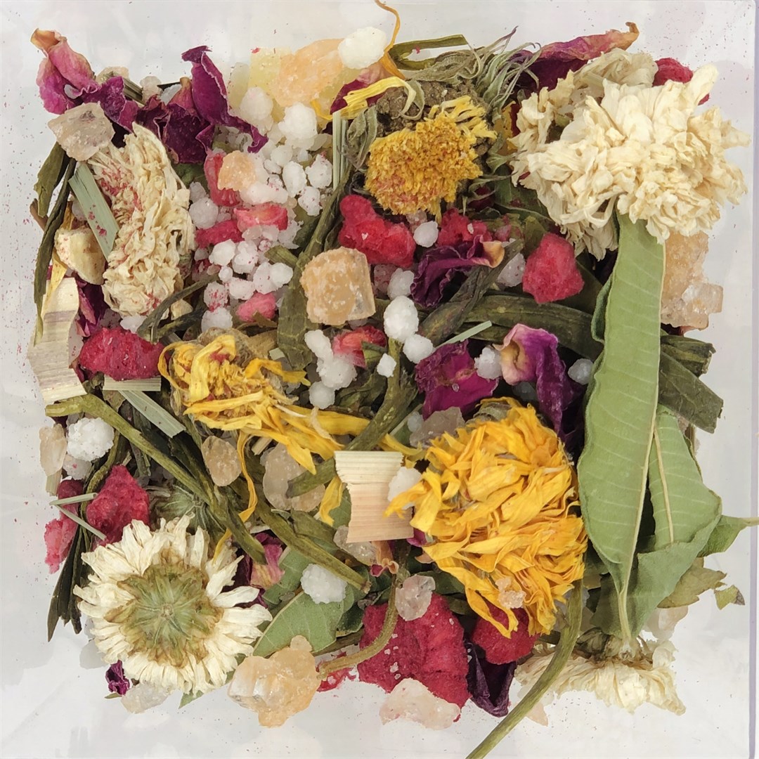 Зеленый чай, цветки Ромашки, цветки Календулы, мелисса, лемонграсс, сублимированная малина, медовые гранулы, цукаты ананаса